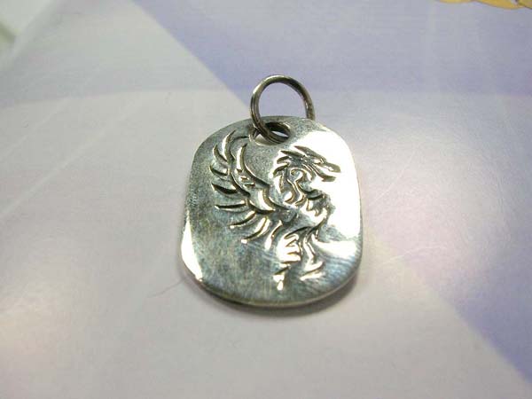 1p010 Engraved dragon tag,Handcrafted in 925. sterling silver pendant Total weight: 4.20grams