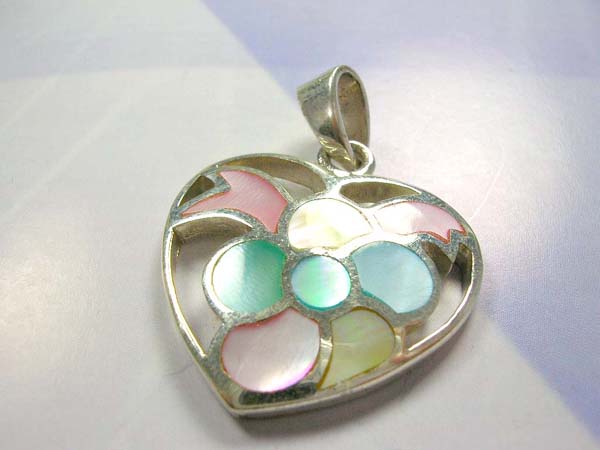 2p004 Multi seashell with ribbon flower, 925. sterling silver mounting pendant Total weight: 2.60 grams