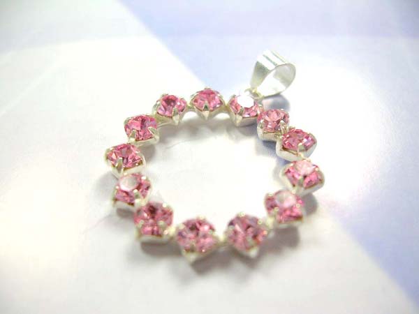 3p001 Multi pinky rhinestone, precious 925. sterling silver pendant Total weight: 1.00 grams