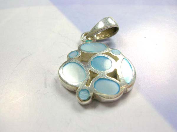 4p008 Fine 925. sterling silver multi circular blue fresh water seashell pendant Total weight: 2.18 grams