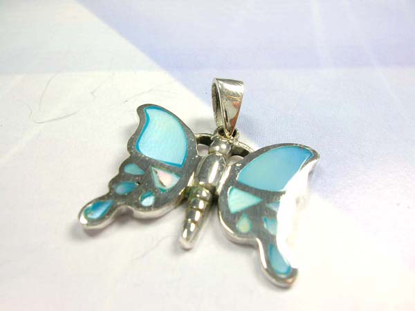 5p015 Spring fashion blue seashell butterfly, high polished 925. sterling silver pendant Total weight: 4.40 grams