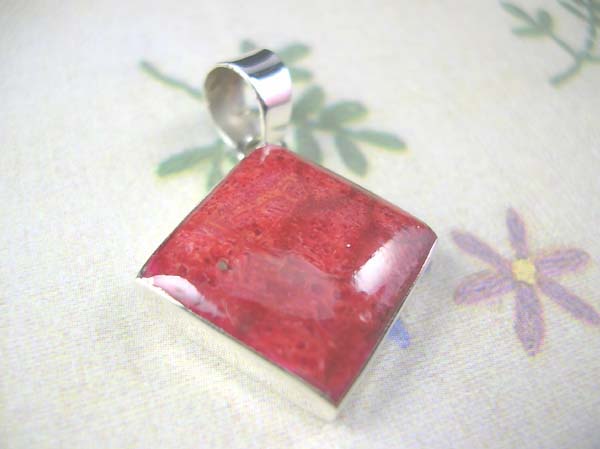 pendant101 Pretty 925. sterling silver diamond red coral stone pendant Total weight: 5.30 grams